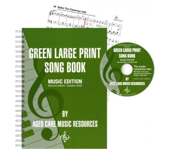 This newly released title, the GREEN LARGE PRINT SONG BOOK MUSIC EDITION SECOND EDITION is the mainstay of the Aged Care Music Resources’ popular Green Book series.