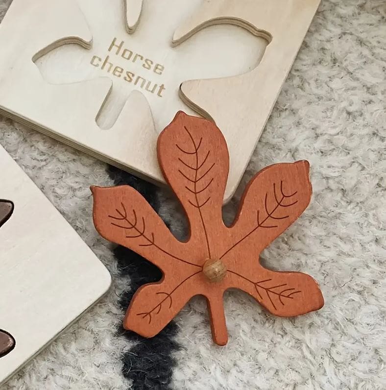 4 x wooden puzzle boards (each featuring a different autumn leaf shape)